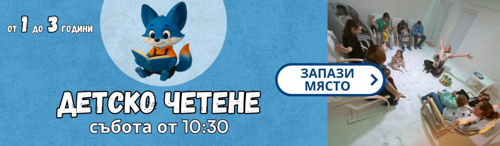 Спокойна атмосфера, приказки, сенсорни игри и първи стъпки към любовта към книгите — всичко това в чистия въздух на солната стая.